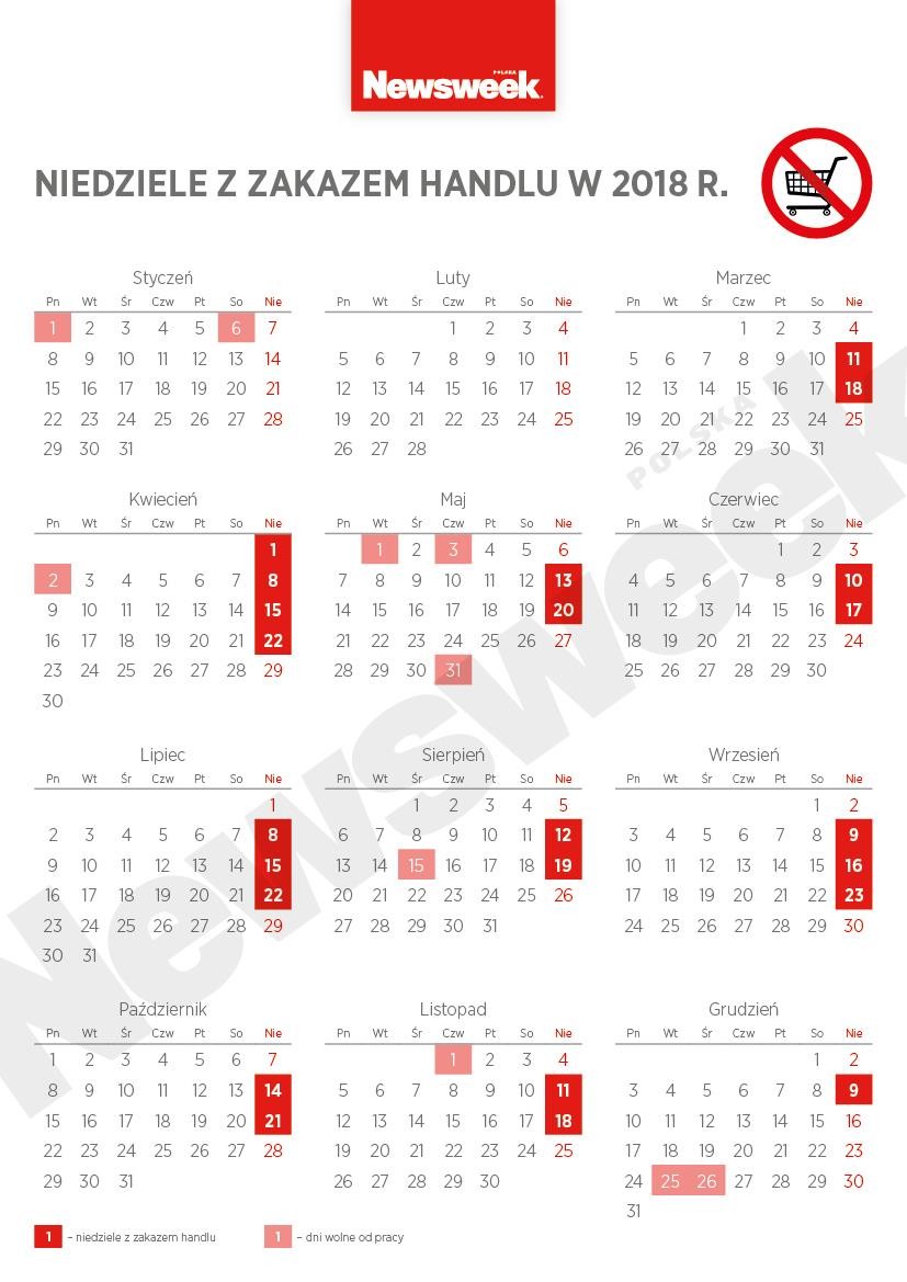 Niedziele bez handlu w 2018. Pobierz kalendarz • Nasze ... from www.naszebialeblota.pl Pamiętaj o tym, że w lutym, maju, lipcu, wrześniu, październiku i listopadzie w ogóle nie zrobisz niedzielnych zakupów w markecie… trudno powiedzieć, czy stan który trwa z nami od. Rok 2021 to rok, w którym wolnych niedziel w całym roku zaplanowanych jest tylko siedem. W 2021 roku tylko siedem niedziel będzie niedzielami handlowymi. Pierwsza możliwość dokonania zakupów w niedzielę będzie dokładnie 31 stycznia. W tym roku zakaz handlu jest jeszcze bardziej restrykcyjny niż w 2019 r. Niedziele handlowe w kwietniu 2021 roku. Kiedy będzie można zrobić zakupy? Za każdym razem, kiedy zamawiasz jedzenie na pyszne.pl, otrzymujesz punkty lojalnościowe.